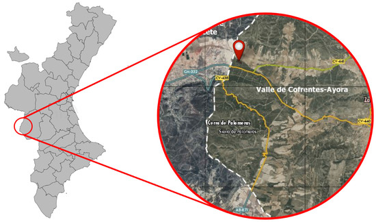 The research plots are situated within the state forest P. V154 “La Hunde y La Palomera”, located at the western limit of the municipality of Ayora in the Region of Valencia in Spain (Figure 1). Geographically, the ETRS89 coordinates of the midpoint of the study area are 39°7′41″ N; 1°13′32″ W.