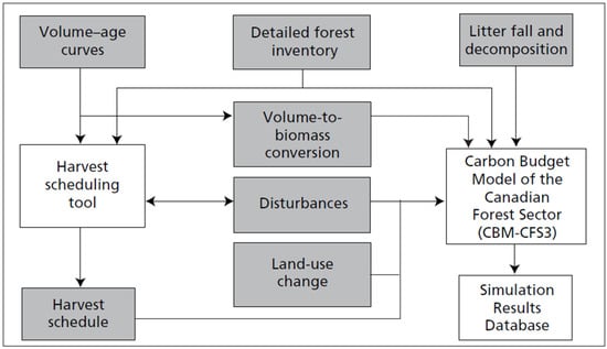 Chart representing input data (gray boxes) necessary to run simulation in Carbon Budget Model of the Canadian Forest Sector (CBM-CFS3) Reprinted/adapted with permission from Ref. [16].