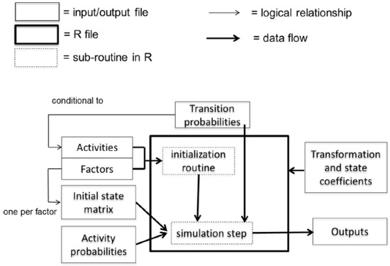 Input data for the framework must be organized in the MS Access (.mdb) format, which the program refers to as the Archive Index Data Base (AIDB). The AIDB was crucial for implementing and performing all calculations in the program. This database later stores all projects created during one or more simulations. A detailed description of the database requirements can be found in the source material [9,15]. The flowchart below gives an overview of input data required to run the simulation (Figure 1). A detailed description of each element is provided in this section.