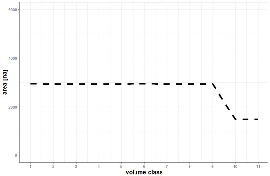 Distribution of the volume classes over the area (ha) used in EFDM.