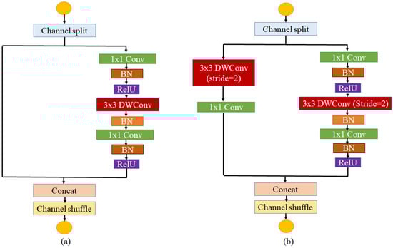 ShuffleNet v2 basic units: (a) basic unit, (b) basic unit for spatial down-sampling.