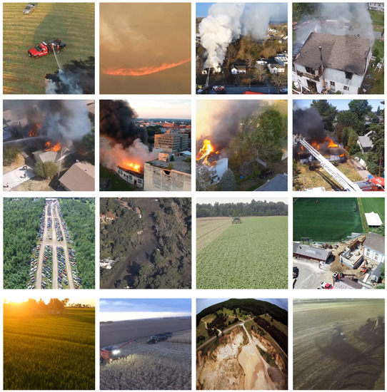 - Mou, L.; Hua, Y.; Jin, P.; Zhu, X.X. Era: A data set and deep learning benchmark for event recognition in aerial videos [software and data sets]. IEEE Geosci. Remote Sens. Mag. 2020, 8, 125–133. [Google Scholar] [CrossRef]
