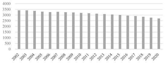The number of FPCs drastically increased after 1966, when modernization processes began, exploding from 586 in 1966 to 1494 in 1976, with a peak at 3482 in 1996. Since then, the number has decreased (Figure 1); as of 2020, 2693 FPCs could be found in Japan.
