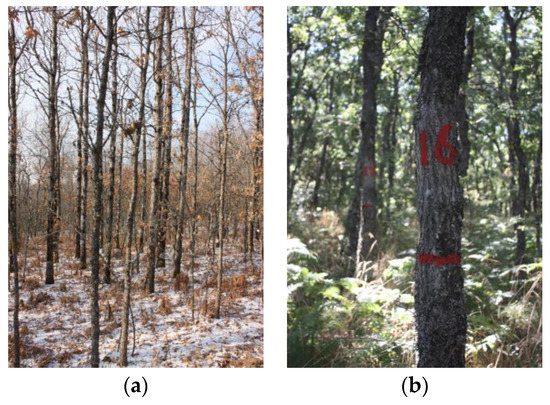 Some Pyrenean oak forests have been exploited as coppices for the production of small-size material, mostly for firewood [5,7]. The species is considered to have a good ability to regenerate either by stool or root sprouts [8]. Usual rotations vary between 15 to 30 years, depending on the site quality. Human practices have significantly modified the distribution, structure, and composition of these forests.