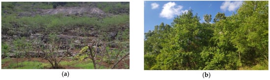 Comparison of different stand structures: (a) Worse stand structure with Tectona grandis L.F. only. (b) Better stand structure with Quercus fabri Hance, Lindera glauca (Sieb. et Zucc.) Bl, Arthraxon hispidus (Trin.) Makino, etc. (Source of the pictures: Photoed by Lingwei Kong.).
