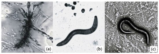 - van Ooij, C. Hungry fungus eats nematode. Nat. Rev. Microbiol. 2011, 9, 766–767. [Google Scholar] [CrossRef]