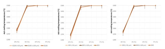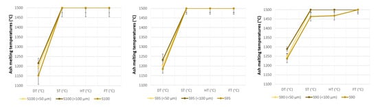 The average values with standard deviations of the measured ash melting temperatures with ash prepared at 550 °C are stated in Table 2.