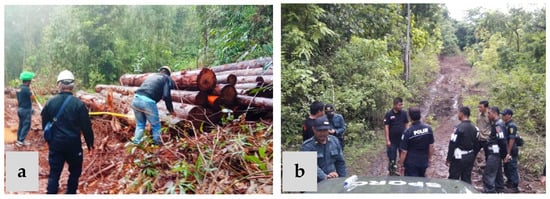 The destruction of forests can be attributed to many factors, including illegal logging [39]. Illegal logging is one of the problems that leads to forest land loss in various countries, including Indonesia. Illegal logging has two main causes: industrial needs and the transition of forest functions. Firstly, the industrial demand for wood (i.e., building materials, firewood, paper, tissues, and several types of product packaging) is remarkably high. Secondly, some parties previously cleared the land by cutting down trees to change forest functions (i.e., the transfer of forest functions to oil palm land, settlements, agriculture, and other functions) [40,41].