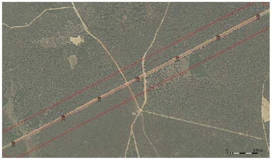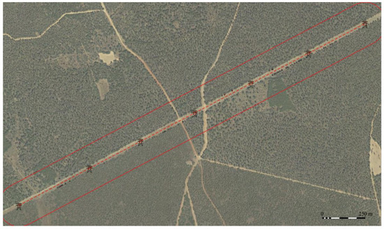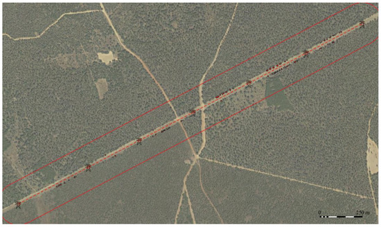 The study area (Figure 7) corresponds to a 400 kV high-voltage power line with a length of 113 km from the southwest to the northeast of the province of Zamora (Spain). In particular, the section analysed covers a length of 53 km.