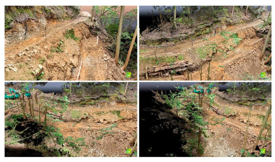 Additionally, there was a considerable time lag between drone photography and TS surveying during the measurements before and during the repair work. This was because the survey was conducted safely so as not to interfere with the repair work as much as possible. In some locations, earthwork, or log construction may have been undertaken after drone flight and before the TS survey.