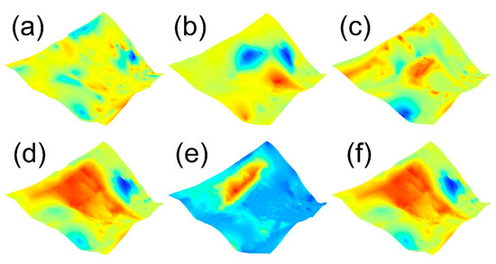 Figure 8 shows a 3D model of the earthwork sections at each stage. The cut and fill areas are shown in blue and red, respectively. In Figure 8f, showing the overall earthwork volume in the lower right corner, almost the entire missing fill area was covered with fill. The cut and fill areas were indicated in each step, making the procedure easy to understand. The entire fill was shown in blue, except for some parts, in Figure 8e. This is because the photographs after the repair work were not taken until three weeks after the completion of the repair work, and it is presumed that the entire fill has tightened and settled.