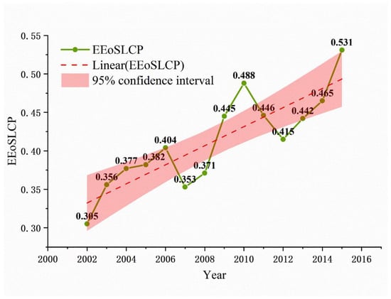 Figure 4. The average value of EEoSLCP, 2002 to 2015.