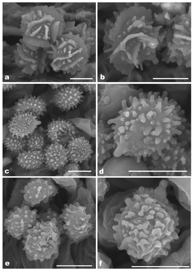 Basidiospores of Russula sect. Ingratae species from herbarium materials under SEM. (a,b) R. fujianensis (FHMU975, holotype); (c,d) R. oraria (FHMU5355, holotype); (e,f) R. rufobasalis (FHMU827). Bars: 5 μm. Photos: Y.X. Han.
