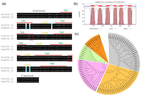 4.1. PagPIP2;10 Is a Classical Member of AQPs
