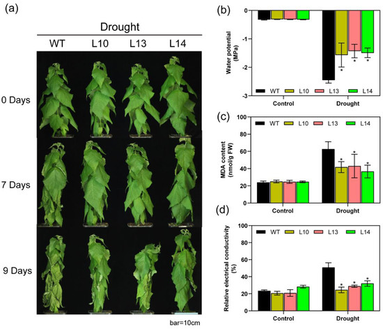 APA StyleYu, X.-Q., Su, W., Liu, C., Wang, H.-L., Yin, W., & Xia, X. (2023). PIP2;10 Enhances Drought Tolerance via Promoting Water-Retaining Capacity in Populus. Forests, 14(4), 696. https://doi.org/10.3390/f14040696