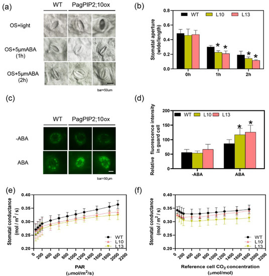 3.7. PagPIP2;10 Promotes ABA-Induced Stomatal Closure