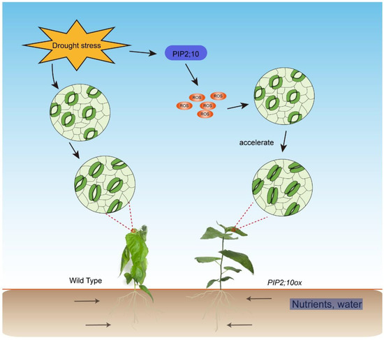 3.5. Overexpression of PagPIP2;10 Maintains Higher Photosynthesis
