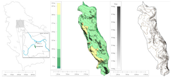 Location, topography and slope angle of the terrain of Košutnjak Forest in Belgrade.