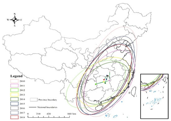 3.2. The Result of Standard Deviation Ellipse Analysis