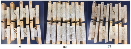 The change in failure behaviour can also be observed from the failure planes of the samples when subjected to different moisture content. In general, the failure modes produced multiple fracture paths for 8 and 12% EMC, whereas a single plane of failure was observed for 16% EMC which could be responsible for lower standard deviation for 16% samples.