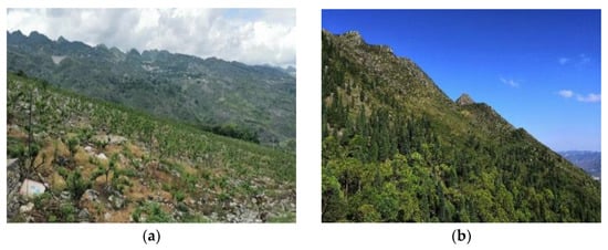 Measures to control rocky desertification: (a) artificial afforestation; (b) closed mountain afforestation.