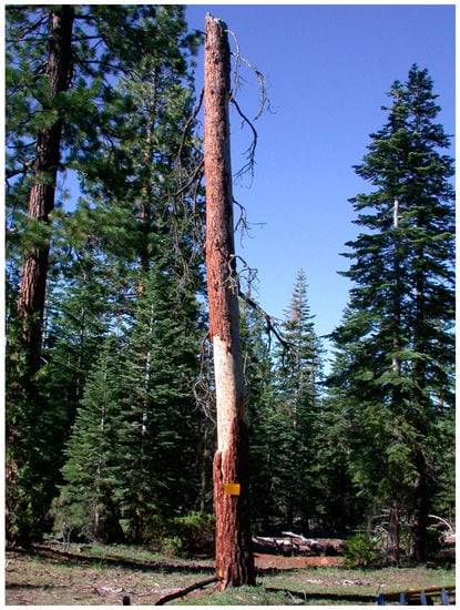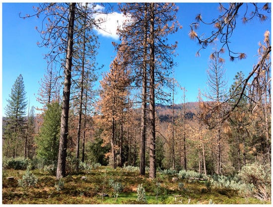 - Fettig, C.J.; Mortenson, L.A.; Bulaon, B.M.; Foulk, P.B. Tree mortality following drought in the central and southern Sierra Nevada, California, U.S. For. Ecol. Manag. 2019, 432, 164–178. [Google Scholar] [CrossRef]