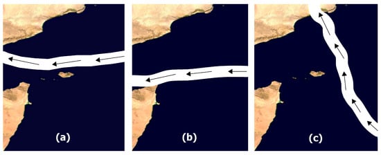 From left: Chapala (a) and Megh (b), both hitting Socotra Island in 2015, and the Mekunu (c) cyclone, which passed in 2018. Redrawn after [32].