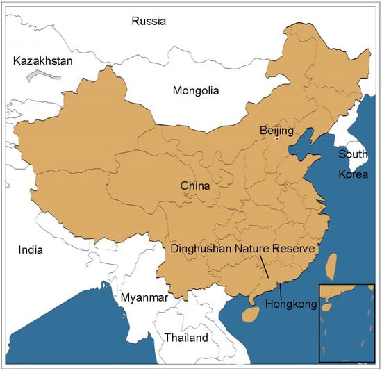 - Liu, S.; Luo, Y.; Huang, Y. Studies on the community biomass and its allocations of five forest types in Dinghushan Nature Reserve. Ecol. Sci. 2007, 26, 387–393. [Google Scholar]