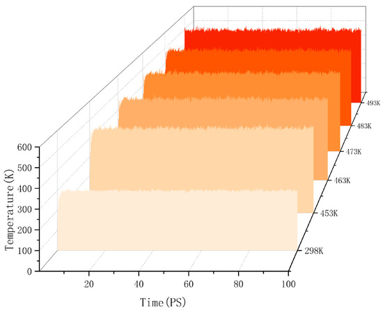 The data in both graphs show stable fluctuations after a certain time, and the temperature does not show significant changes greater than 30 K. Therefore, the model can be considered to be in a local optimum, from which the results of subsequent molecular dynamics simulations can be trusted [21].