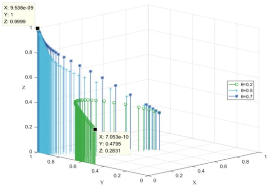 When , we can deduce that holds, under the condition that , and therefore, the is the evolutionary stabilization strategy. The results are shown in Figure A3.