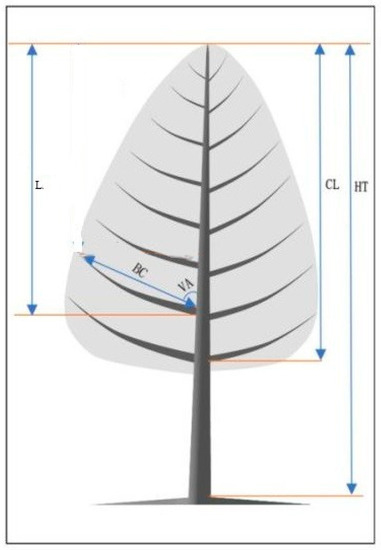 - Linnell Nemec, A.F.; Parish, R.; Goudie, J.W. Modelling number, vertical distribution, and size of live branches on coniferous tree species in British Columbia. Can. J. For. Res. 2012, 42, 1072–1090. [Google Scholar] [CrossRef]