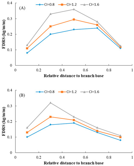| FDRs | Relative annual shoot foliage density | Ratio of annual shoot foliage density to the top of the first annual shoot below the live crown void of live branches |