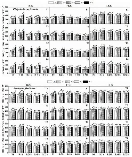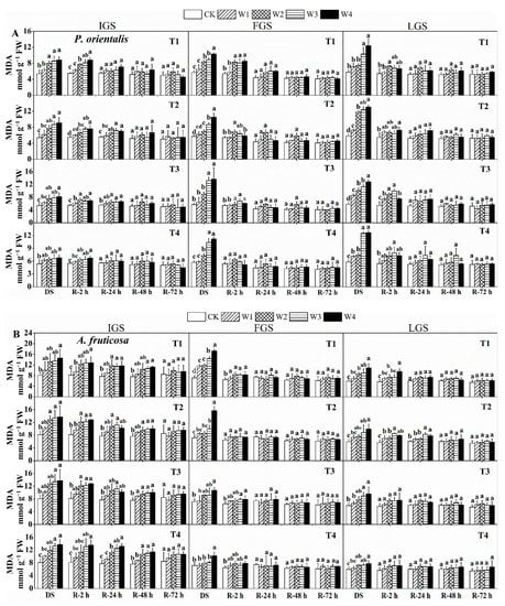 APA StyleFeng, S., Sultana, S., Sikdar, A., Roy, R., Wang, J., & Huang, Y. (2023). Lipid Peroxidation, Antioxidant Enzyme Activities, and Osmotic Adjustment in Platycladus orientalis and Amorpha fruticosa Differ during Drought and Rewatering. Forests, 14(5), 1019. https://doi.org/10.3390/f14051019
