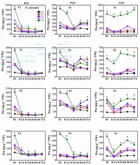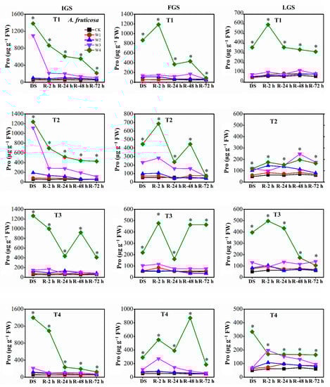 3.3. Effects of Drought and Rewatering on Osmotic Solutes