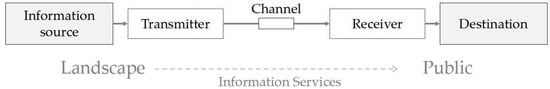 According to Costanza [24], the provision of ecosystem services stems from the flow of materials, energy, and information from natural capital stock, essentially. Capital stock can take intangible forms, notably information stored in computers, individual brains, species, and ecosystems [24]. This environment information including aesthetic information, spiritual and religious information, historic information, cultural and artistic inspiration, scientific information and so on [25]. That composes an information system which contribute to the maintenance of psychological health by providing opportunities for reflection, spiritual enrichment, cognitive development, and aesthetic experience [23]. Claude E. Shannon, the founder of information theory, depicted the general path of information dissemination as a linear model of communication. He believed that communication is the information transmission between two systems: a message is sent by the source, passed through the channel, and then acquired by the host, which constitutes a general communication system (as shown in Figure 1). Shannon stated that an information communication system must contain five basic elements: an information source, a transmitter, a channel, a receiver, and a destination [26]. Essentially, the creation of ecosystem cultural services is a process in which environment information communication occurs between the landscape and the public. Environmental information communication here implies that environmental information stored in the landscape and related social groups (information sources) is received by the public (destinations). The above-mentioned exchange of environmental information occurs more frequently while the public is engaged in cultural activities. These information and activities are recorded in the form of textual or pictorial information and reflect the probability of environment information communication occurring in the landscape. Collecting, encoding, and computing the textual and pictorial information recorded by these carriers can, to some extent, help us understand the potential of UGS throughout history of providing services and public perception of cultural services.