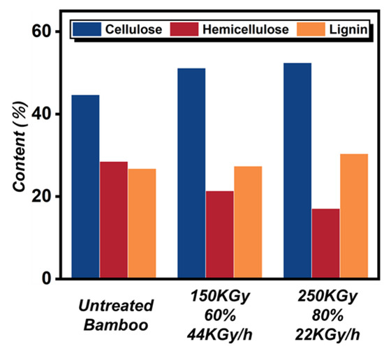 The relative content of the major chemical components of the untreated and gamma ray irradiation-treated bamboo strips.