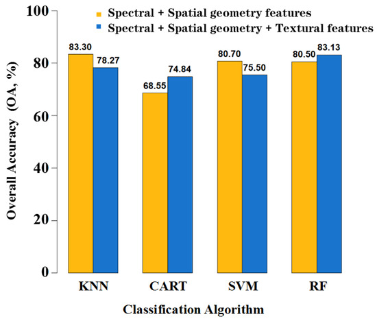 Classification accuracy of four algorithms with spectral and spatial geometric features.