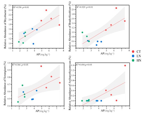 Relationships between sensitive microbial species and available phosphorus. AP: available phosphorus.