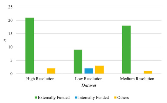 As a matter of fact, most of the funded projects on the mapping of mangroves using RS have been awarded to this institution. It therefore follows that the number of publications is skewed toward the institutions named. Moreover, results have also indicated that high-resolution datasets are difficult to access unless they are funded externally (Figure 9).