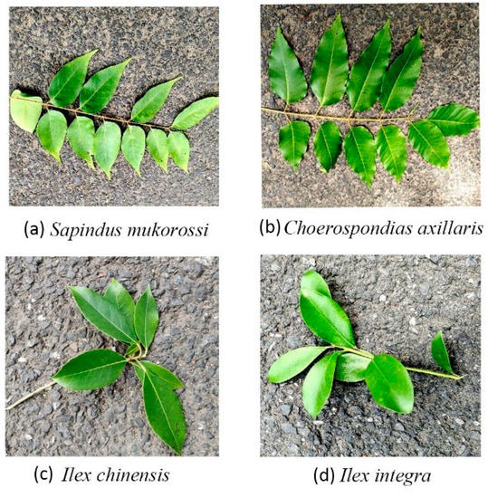 Ground, airborne, and satellite remote sensing platforms have been applied for tree species identification [6,7], although there is the general problem of a low number of identified tree species owing to large data scales [8]. With the continuous breakthroughs in microchip technology, mobile smartphones are widely used for their convenience and accessibility and are, therefore, also used for mobile terminal identification of tree species. For example, Kumar et al., 2012 [2] proposed a tree retrieval system and developed a smartphone application, Leafsnap, to retrieve and identify tree species. This application uses the smartphone’s camera to extract leaf shape images. Samples are usually images of single leaves taken against a white background. The identified samples are mainly from many tree species in North America. Many other smartphone applications based on leaf characteristics have spawned in recent years. However, these mobile applications are sensitive to the shooting environment, and the recognition accuracy will fluctuate with the shooting angle and light and shadow changes; thus, the recognition accuracy of the images acquired in a natural environment cannot be guaranteed. Therefore, there is a need to develop an automatic tree species recognition that can adapt to natural light and shadow changes, with background information and multi-foliage situations.