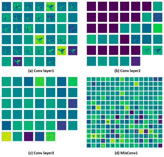 Using the lightweight MixNet XL model instead of a single-sized convolution kernel to compute the features of all the channels in the convolution layer operation, multiple channels are grouped and brought into different-sized convolution kernels for convolution computation, while local perceptual fields of different sizes are used to obtain high-level abstract features. It changes the operational limitation of normal convolution kernels, which is the degradation of accuracy in later stages due to the large size of convolution kernels. The use of mixed depth-separated convolution (MixConv) allows the use of convolution kernels of different sizes to achieve a balance between computational workload and high resolution and effectively reduce computational effort [44].
