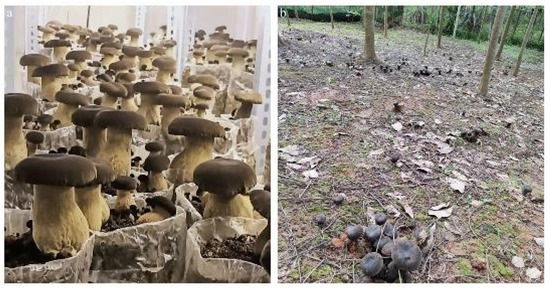 - Cao, Y.; Ji, G.Y.; Luo, S.Z.; Gao, L.X.; Tao, L.; Wang, Q.L.; Yang, R.H.; Bao, D.P.; Ji, K.P. Domestication and artificially cultivation of Phlebopus portentosus: Retrospect and prospect. Mycosystema 2021, 40, 3064–3080. [Google Scholar] [CrossRef]