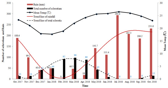 3.2. Seasonal Dynamics of Sclerotia Occurrence in the Field