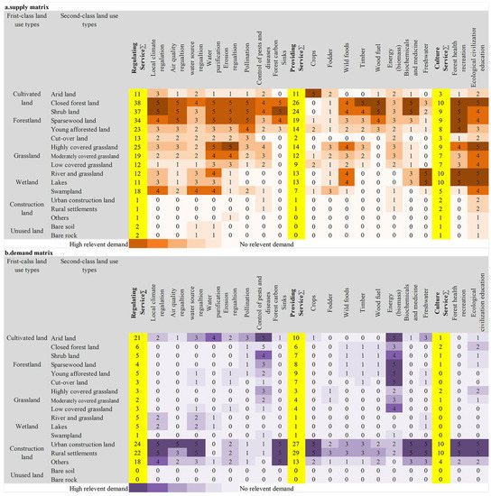 Supply (a) and demand (b) matrices of the Saihanba’s ES.