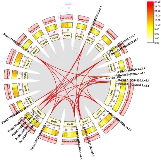 3.3. Chromosomal Location and Collinearity Analysis of PdPFP and PdPFK Gene Families