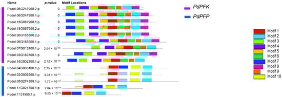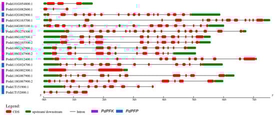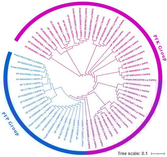 3.5. Phylogenetic Analysis of the PdPFP and PdPFK Gene Families