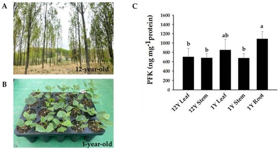 3.6. Analysis of PdPFP and PdPFK Expression Patterns