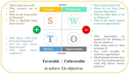 Scheme and questions to carry out the SWOT analysis of EU forest economic instruments.
