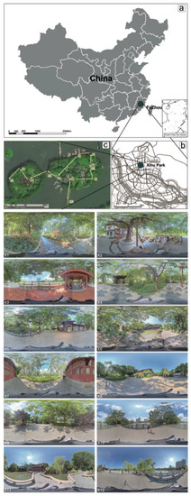 Xihu Park is located in the northwest part of Gulou District, Fuzhou City, and is situated at the city’s center, adjacent to residential, commercial, and office areas in the city center. It’s only 700 m away from the main transportation artery Yangqiao East Road and can be reached by a 10-min walk. With a history of more than 1700 years, it is the most well-preserved classical garden in Fuzhou, and it is renowned as the “Pearl of Fujian Gardens”, ranking among the top 36 West Lakes in the country. Currently, it covers an area of 42.51 hectares, with a land area of 12.21 hectares and a water area of 30.3 hectares. The vegetation composition in Xihu Park is complex, dominated by forests, grasslands, shrub beds and flower gardens. The forest area is relatively large, consisting primarily of deciduous and mixed coniferous forests. The deciduous broad-leaved forest in the Huxin Mountain is the most typical, characterized by dominant tree species such as nanmu, camphor, banyan, and paulownia, forming a natural, primitive, and spectacular ecosystem. The grasslands consist of common lawn grass and some wildflowers, while the shrubs comprise flower bushes and climbing plants. The rich and diverse vegetation composition of Xihu Park is functionally complete, providing an ideal place for urban ecological construction and for citizens to relax, exercise and enjoy their leisure time [44].