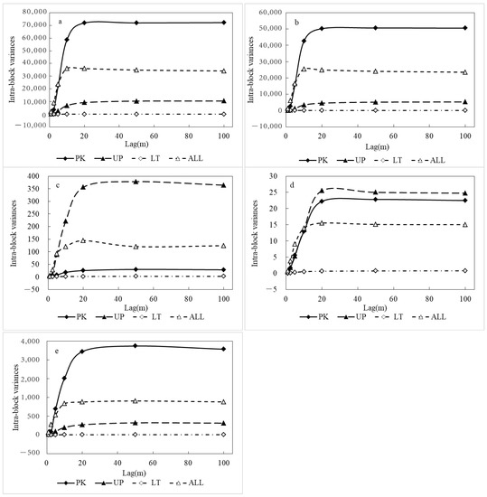 The intra-group variance can be used to describe the spatial heterogeneity of study subjects quantitatively. This is a function of block size and usually increases as the size of the blocks increases [73], and it can be calculated by Equation (1).